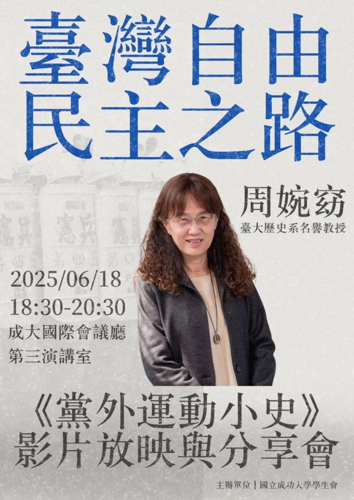 成大學生會邀請我6/18到成大放映影片+分享,沒想到驚動成大歷史系系主任蔡幸娟老師。蔡主任是我的同門學妹,我雖然沒有研究中國史,但讀大學時受到鄭欽仁教授啟蒙,一直到讀完碩班出國前師母都很照顧我們幾位和鄭老師有接觸的同學。我們都非常懷念師母,有個LINE群組以紀念師母為名,成員是鄭老師+同門學長弟妹們,逢年過節大家寫訊息向鄭老師請安,但鄭老師幾乎不看XD。