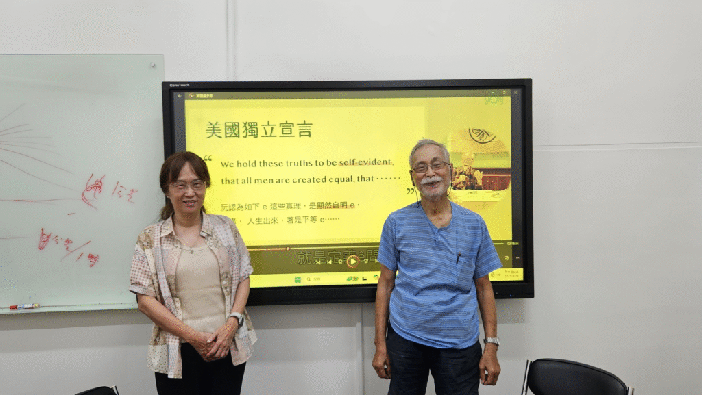 照片:與楊維哲教授合影於「公理self-evident」投影片前(2025/8/19)