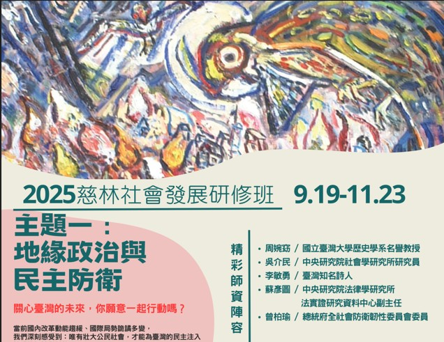 真的很推薦「2025慈林社會發展研習班 9.19-11.23」,還剩幾個空位,請不要錯過好機會。