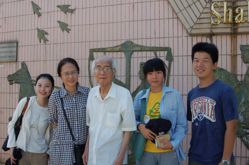 照片二:就是上面提到的陪王先生回母校台北縣沙崙國小拍紀錄片後,於校門前合影。左起:陳慧先、周婉窈、王世慶先生、孫女淳德、陳榮聲。(茱莉亞廣告傳播有限公司提供)