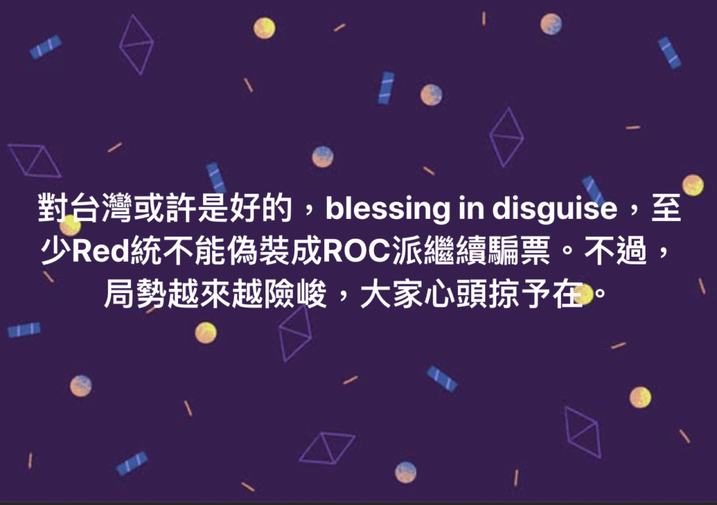 我們什麼都被置換,地名、紀元、所有國家符碼,現在進一步篡奪,但絕大多數人毫無所覺,這才是最糟糕的事情。