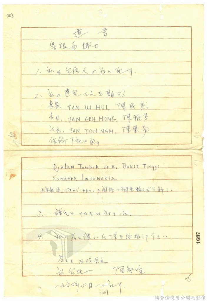 1、 私は台湾人の為に死す。(我為臺灣人而死。)
